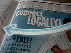 Heute: Selbstgeschnitztes (ohne Nummer) Mein erster in NYC geschnitzter Pfeil! Das gute Stück liegt auf einer der Doppel- seiten der Village Voice, mit denen ich den grauen Boden meines Studios zum Teil abgedeckt habe. Styropor ist in New York teuer und eigentlich in nur einer Stärke (ca. 2 cm) und einer Qualität (schlecht) in absurd langen Platten (ca. 250 x 60 cm) zu bekommen. |
