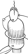 Da, wo ich am rechten Mittelfinger den Stift führe, hat sich eine kleine Delle gebildet... und davor ein kleiner Huckel.