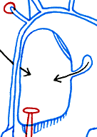Lieblingspfeil Nr. 564 Pfeil mit kümmerlicher Pfeilbahn Aus dem digitalen Nichts werden schicke Bilder: dies zu illustrieren muss hier die Pfeilbahn mithelfen, weshalb sie am Start derart kümmerlich ausfällt, dass der ganze Pfeil aus dem Gleichgewicht gerät. Zum unausgewogenen Eindruck trägt auch die stumpfe Pfeilspitze bei, die dass Erreichen des Zieles Bilder deutlich machen soll, die es HIER, hin- ter der Tür, und gibt, geben könnte. Vgl auch mit LP 52, einem kürzest mög- lichen Um-die-Ecke-Pfeil. |