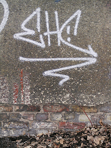 Holz-Pfeil an einem Zaun in Berlin Wedding