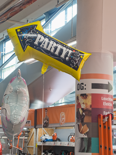 Lieblingspfeil Nr. 1709 Gefüllter Pfeil (2) Allgemein gehaltener PARTY!-Hinweispfeil als Luftballon, der, dann mit Helium befüllt, vor Veranstaltungsorten angebracht werden kann und so bestimmt einige Aufmerksamkeit generiert. Allerdings: für die meisten Einsätze eines solchen Ballon-Pfeils schiene es mir sinnvoller, er würde nach unten zeigen... |