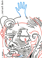 "Beim Zeichnen* kann man extrem auseinander Liegendes nebeneinanderstellen. Das ist eine besondere Form der Intelligenz. Es gibt diese Intelligenz der Lateralisierung im bloßen Tun, in der Rage, im Kampf, in der Liebe, im Geschäftsleben, in der Vita activa eher selten." Die ersten zwei Sätze sind toll. Aber "Intelligenz der Lateralisierung"? Googlet man dass, dann gibt es genau zwei Verweise auf eine Fundstelle: "Ich bin eine Leseratte!" von Alexander Kluge in der NZZ von heute... Während Lateralisation allgemein für "Seitwärtsverlagerung" steht, bezeichnet der Begriff in der Neurophysiologie die Aufteilung von Prozessen auf die rechte und linke Gehirnhälfte. Dann wäre die Intelligenz der Lateralisierung die sich durch die Art und Weise der biologisch nötigen und möglichen Aufteilung von Denk- und Verarbeitungsprozessen auf unterschiedliche Hirnbereiche einstellende Verarbeitungslogik? |