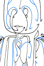 | Die bei A.R. Penck oft auftretenden dreifingerigen Hände erinnern mich an nach unten weisende Pfeile und da habe ich mal diese kleine Animation gebaut, um das nachvollziehbar vorzuführen. |