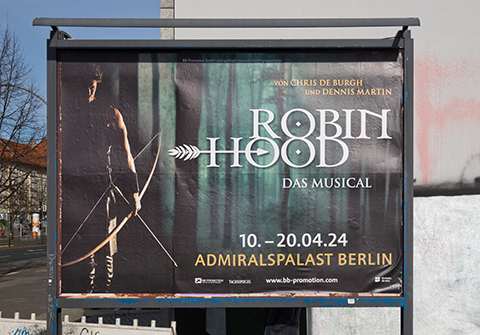 Lieblingspfeil Nr. 2056 Verpfeilter Buchstabe Dieses verpfeilte "H" zeichnet sich dadurch aus, dass der Start der Pfeilbahn, der auf den ersten Eindruck den eines befiederten Waffenpfeils macht, von einer stilisierten Blume gebildet wird. Ungewöhnlich ist bei dieser blumigen Befiederung, dass das erste Blatt gespalten ist und so nicht nur einer Bogensehne Platz bieten würde, sondern auch den Eindruck einer Blüte macht. (Siehe Abb. rechts, wo ich das eigentlich weiße Pfeilende invertiert und das erste Blatt, bzw. die Blüte, gelb eingefärbt habe. Ansonsten habe ich die Gestaltung nicht verändert.) Auf die Idee, dass das erste Blatt eigentlich eine Blüte darstellt, darstellen muss, kommt man deshalb, weil es sonst keine stilisierten Darstellungen von Zweigen oder Pflanzen gibt, deren letztes, und dann immer mittig platziertes Blatt, gespalten wäre.... Anscheinend möchten die Gestalter des Robin Hood-Schriftzugs den Eindruck erwecken, dass der Robin Hood im Musical keine bösen Waffenpfeile, sondern romantische Blumenpfeile verschießt, Liebespfeile, die eigentlich einem Amor, bzw. Cupido, angemessen wären. Lustig: im, mich nicht überzeugenden, Trailer zum Musical, sieht man ohne Ende Bögen, deren Bogensehnen auch immerzu gespannt werden, aber keinen einzigen Pfeil. Vg. auch mit LP 0792: ein Bogen ohne Sehne, aber mit Pfeil weil es bei einer Bronze nicht anders geht... |