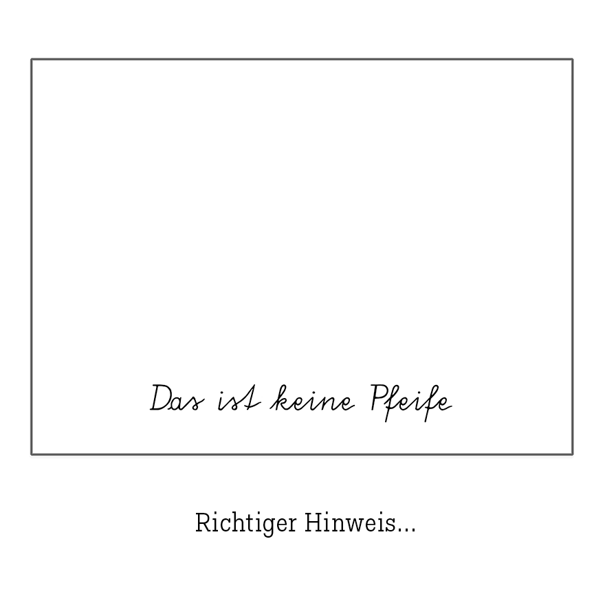 Ein von mir falsch zugewiesenes Zitat (in der Tradition von Marc-Uwe Kling bzw. dem Känguru), das Originalzitat auf weißer Leinwand ohne Pfeife ist von John Baldessari
