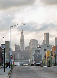 Abb.: Blick von der Straße in Long Island (Queens), wo Kater zeitweilig wohnte, nach Manhattan.